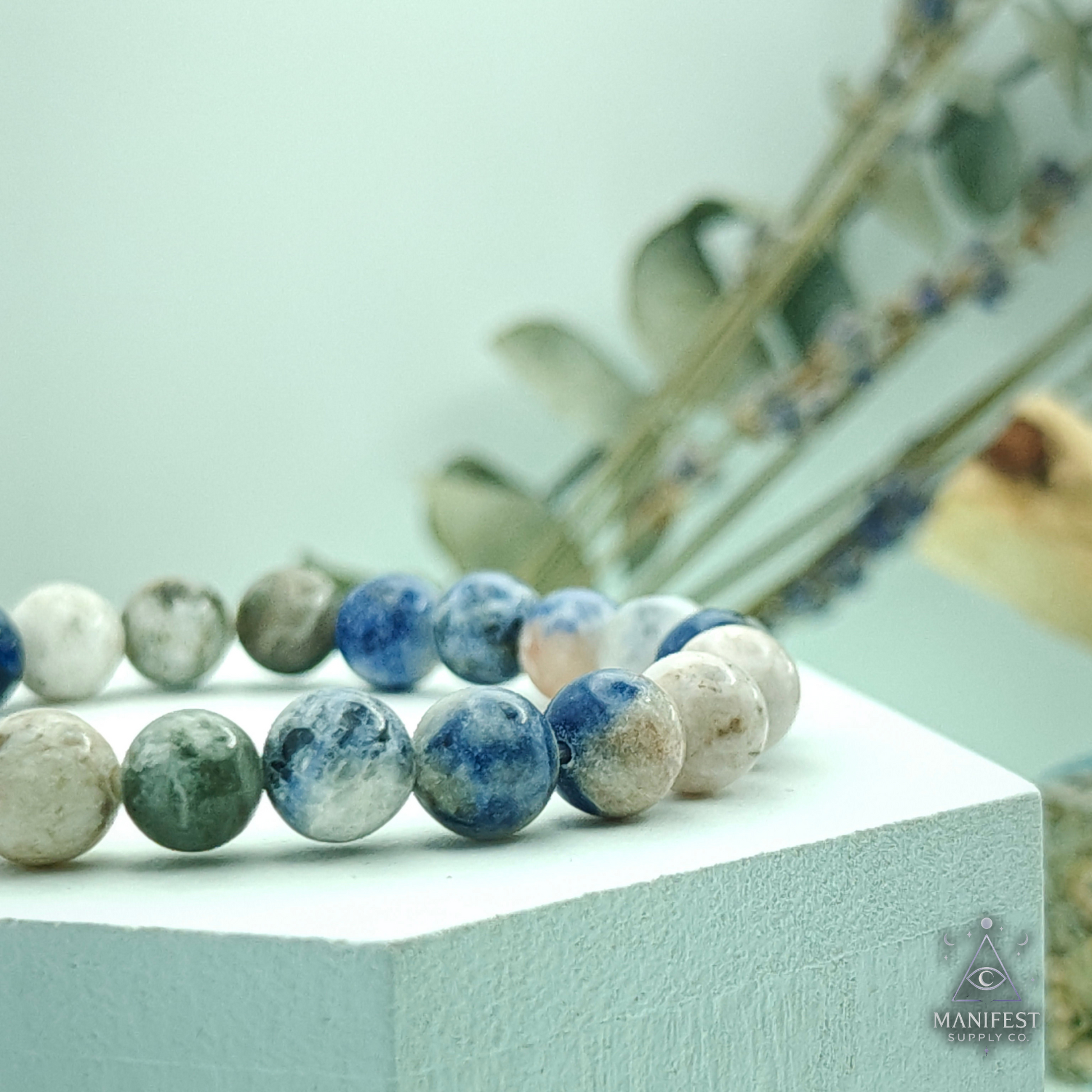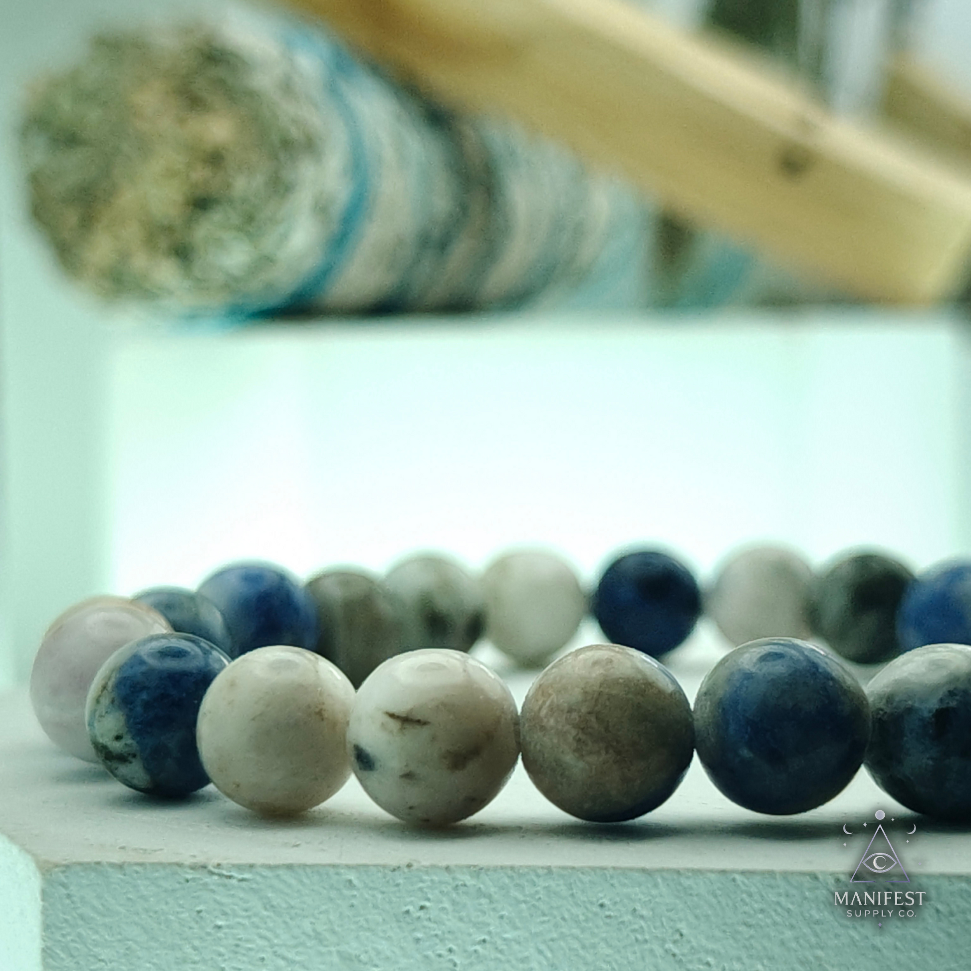 Our Sodalite Bracelet is designed for those seeking clarity, balance, and deep self-awareness. This striking blue stone, streaked with white calcite patterns, is often called the “Stone of Truth” for its ability to inspire honest communication and clear thinking.